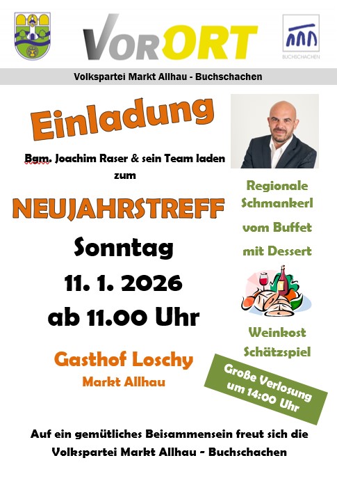 Wir laden euch herzlich zum Neujahrstreff der Volkspartei Markt Allhau und Buchschachen ein.