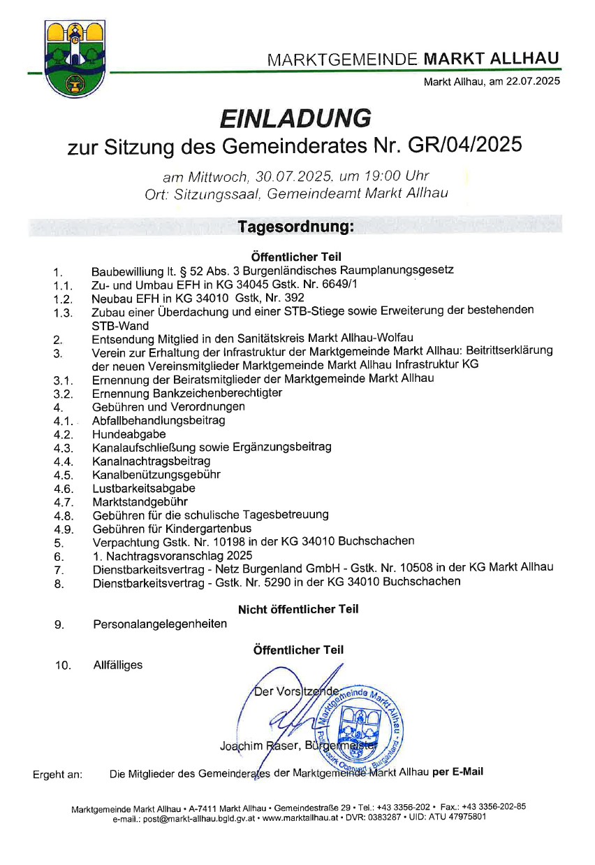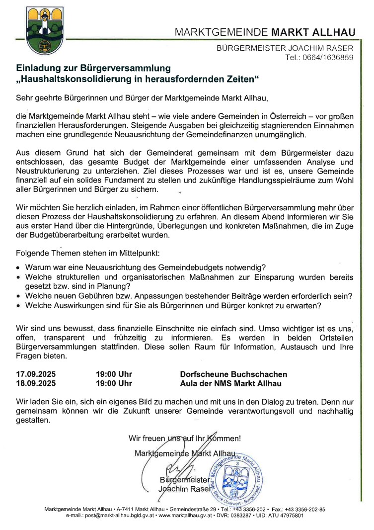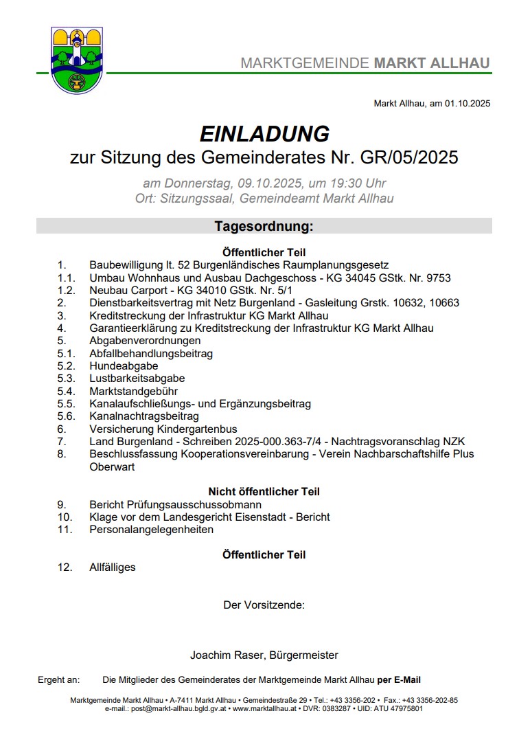 Mitglied des Beirats der Marktgemeinde Markt Allhau Infrastruktur KG